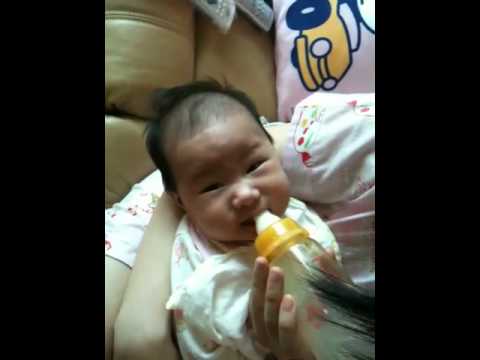 孜妍唔想食都係用條脷頂奶咀,狂推開個奶樽,然後再狂喊~~~